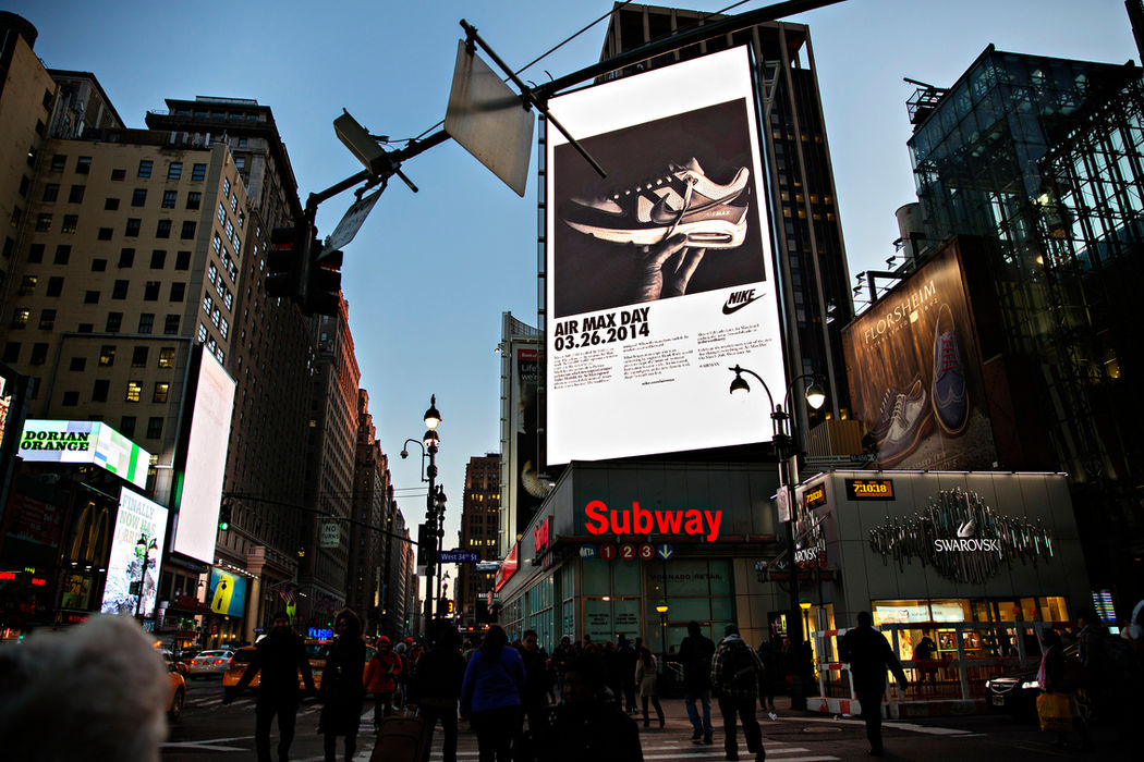 On March 26, 2014, we asked sneakerheads worldwide to shared their love for Air Max. Their photos and stories became part of the celebration, #WearYourAir as a UGC-driven campaign on social & showcased on a massive digital billboard in NYC.